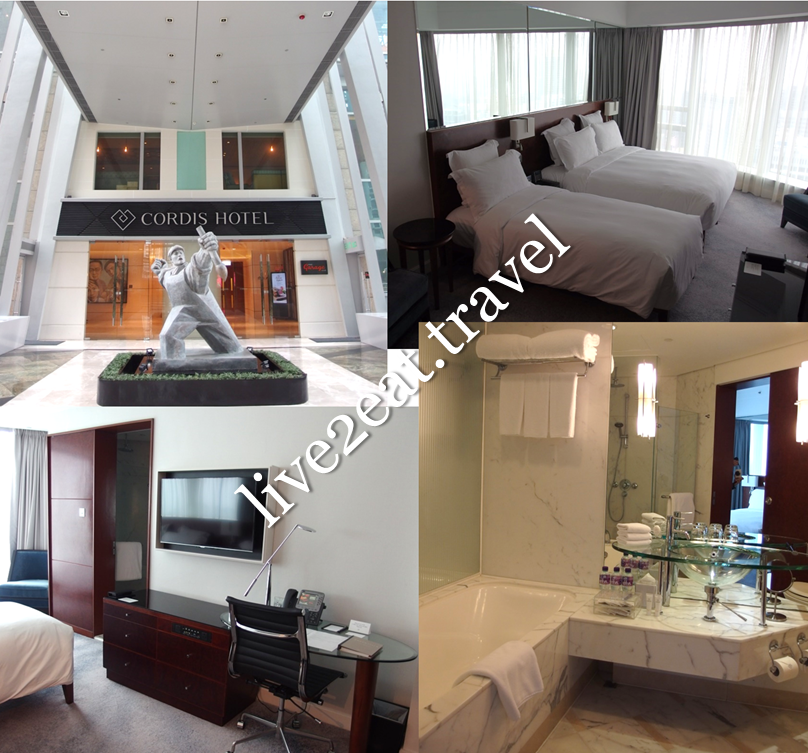 Cordis, Hong Kong at Langham Place (formerly Langham Place, Hong Kong) is part of Langham Hospitality Group whose 30 properties span 4 continents. Located above a cooked food centre, it is linked to Mongkok MTR station via Langham Place Shopping Mall that was in the news earlier this year for an escalator accident. Stay indoors and near to your hotel on a typhoon warning signal 3 day – eat dim sum at Jasmine Garden, buy baked goods at Kee Wah Bakery or Maxim's Cakes and shop 'til you drop. Walk back once the signal 8 is hoisted as there will no public transport. There is a herbal tea shop beside the hotel, cha chan teng chain Tsui Wah Restaurant across the road and Hui Lau Shan Healthy Desserts round the corner. Chose this as it has rooms that can accommodate up to 4 adults and will choose it again for its clean rooms, pleasant and helpful staff. I loved its location, bathroom amenities and bedroom slippers too.